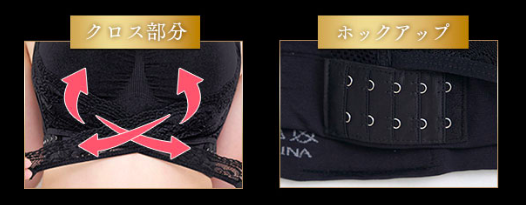 また、このクロス構造は姿勢補正効果もあります。猫背などの前傾姿勢は、バストの形を悪くする原因ともなるので、正しい姿勢へと導いてくれることにより、美しいバストをキープする手助けをしてくれます。