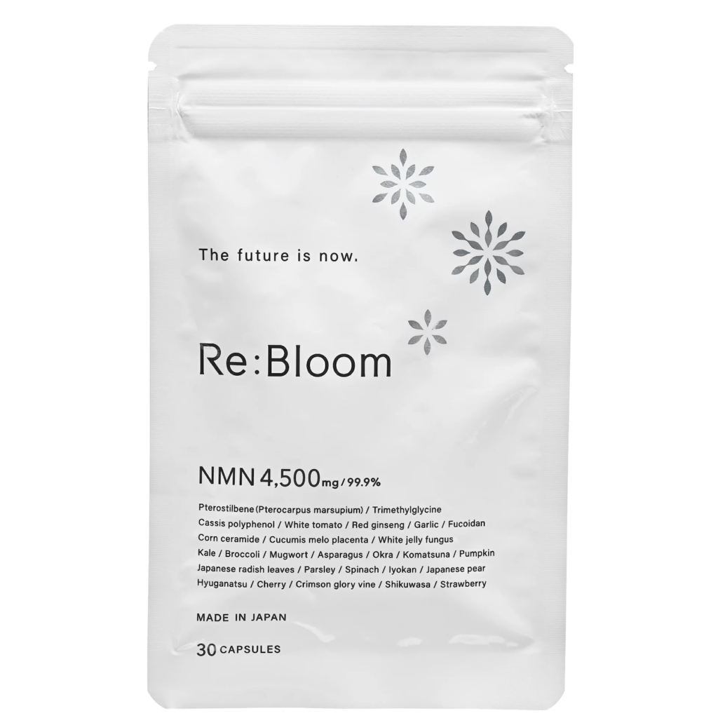 Re:bloom(リブルーム)は、注目のNMN成分だけでなく、美容成分や健康に良い成分を一度に補えるサプリメントです。